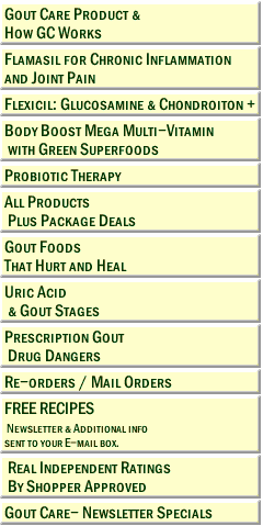 The information on this page and site may contradict most of the confusing food suggestions you have read in the past regarding gout control. Time and again, physicians and gout sites will tell you to avoid high purine foods such as beef and asparagus, while suggesting unhealthy "low purine" selections such as breads and sugars. This will not work. The solution is pH balance, acidic and alkaline food control, and vitamins/supplements. You can, and must, obtain the right balance of foods, with the help of supplements, in order to eat well and still remain gout free. Trust us folks, we've been doing this for over 15 years and are the pioneers of gout control by way of supplementation. We know what we are talking about. This will be the last stop for your gout control, guaranteed. Our testimonials speak for themselves. We are a company full of FORMER gout sufferers. We know what we're doing. Please take the time to read through our entire site and learn more about gout and gout control than ever before.
